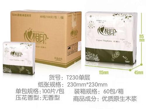 | 心相印T230单层方形餐巾纸(60包/件) | |