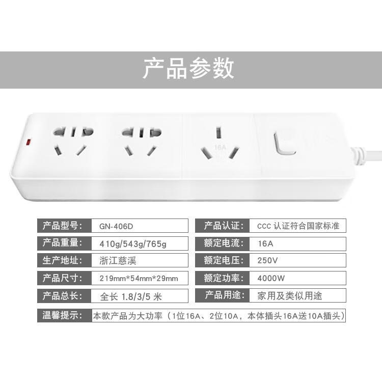 | 公牛GN406D-1.8米排插+开关16A+2/10A | |