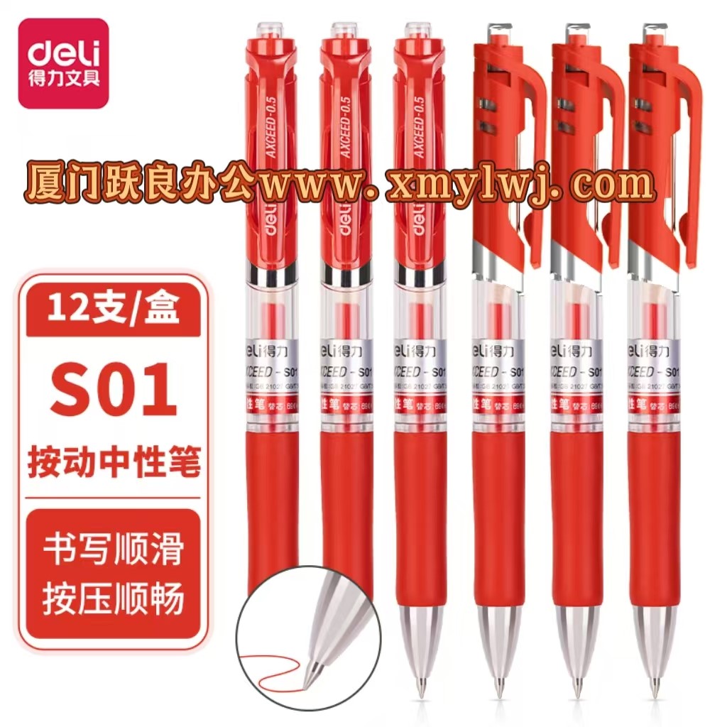 | 得力S01按动中性笔/红/0.5 | |