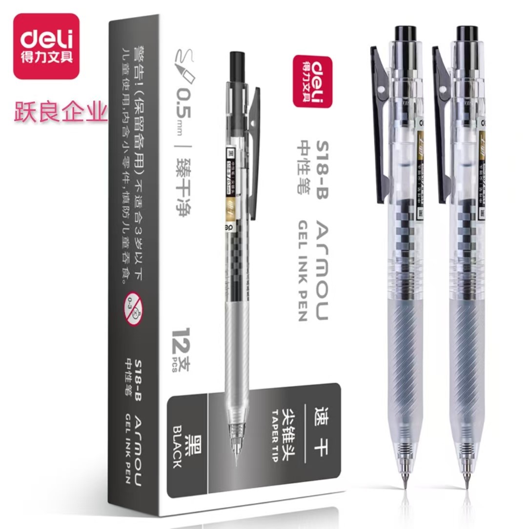 | 得力S18-B按动中性笔0.5mm加强型针管(速干)黑 | |