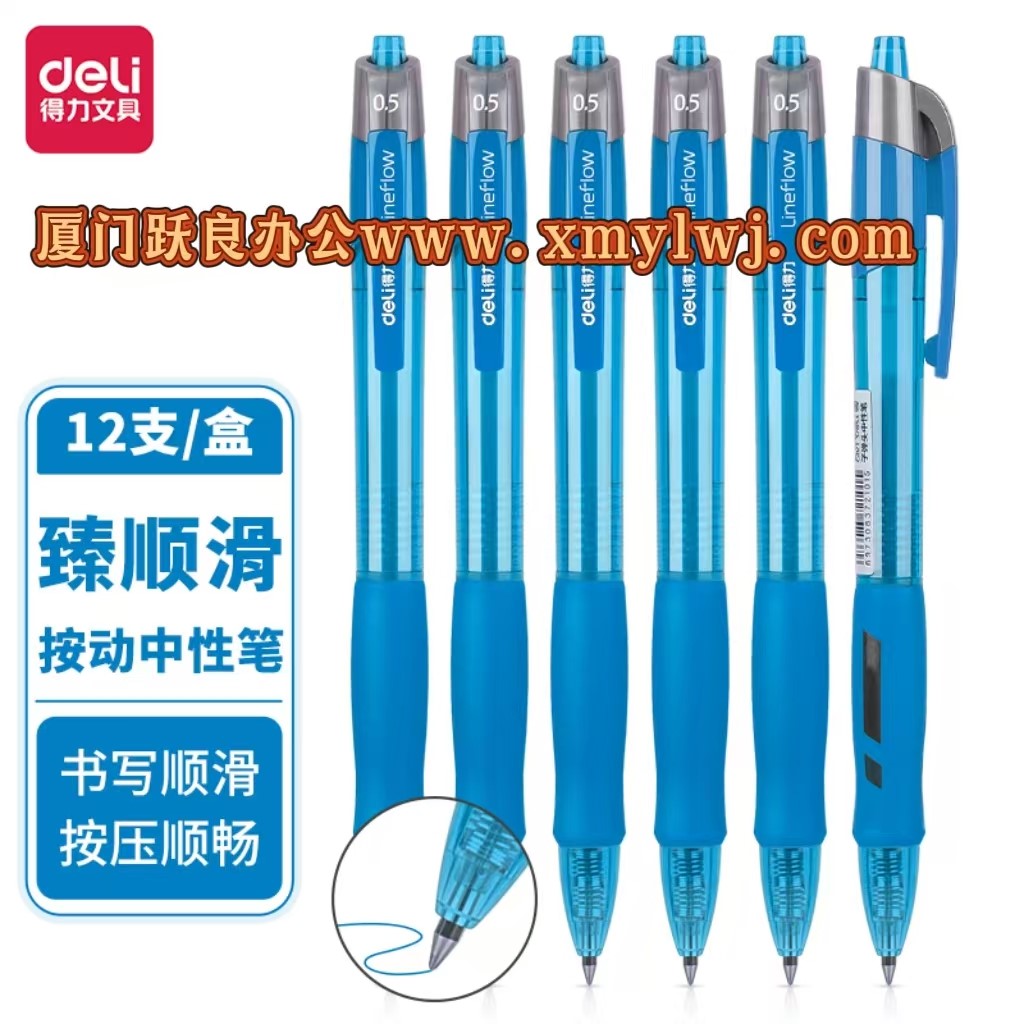 | 得力S08臻顺滑办公中性笔蓝0.5mm弹簧头(12支/盒) | |