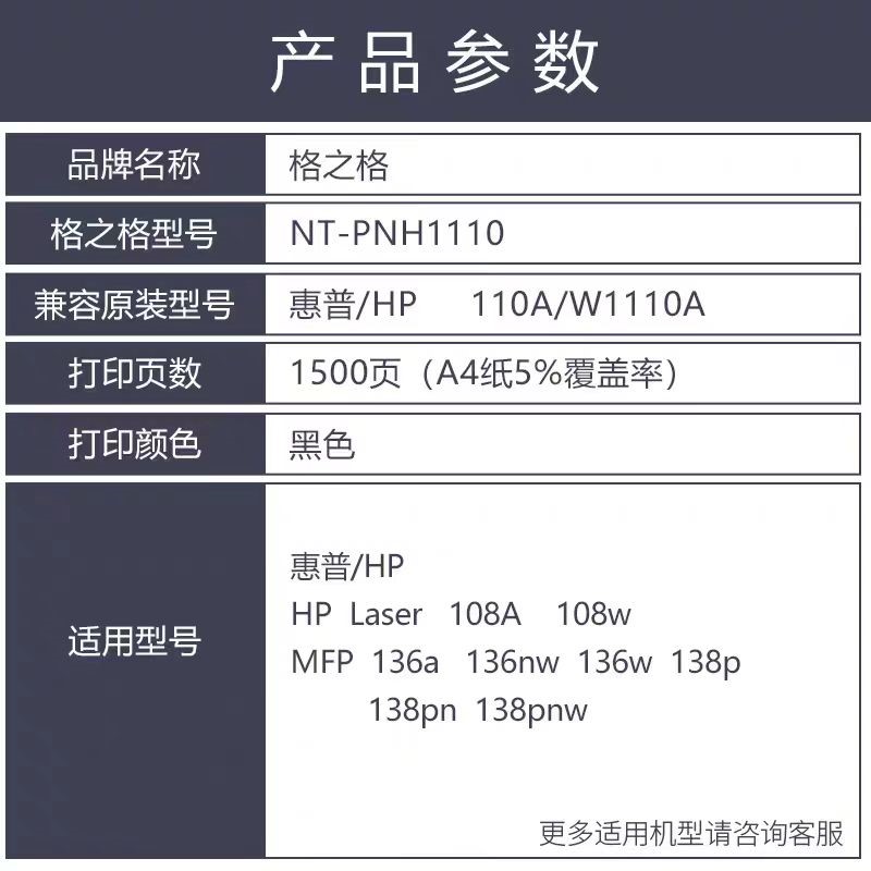 | 格之格HP 110E W1110A硒鼓带芯片 108A 136A | |