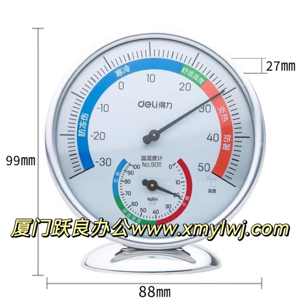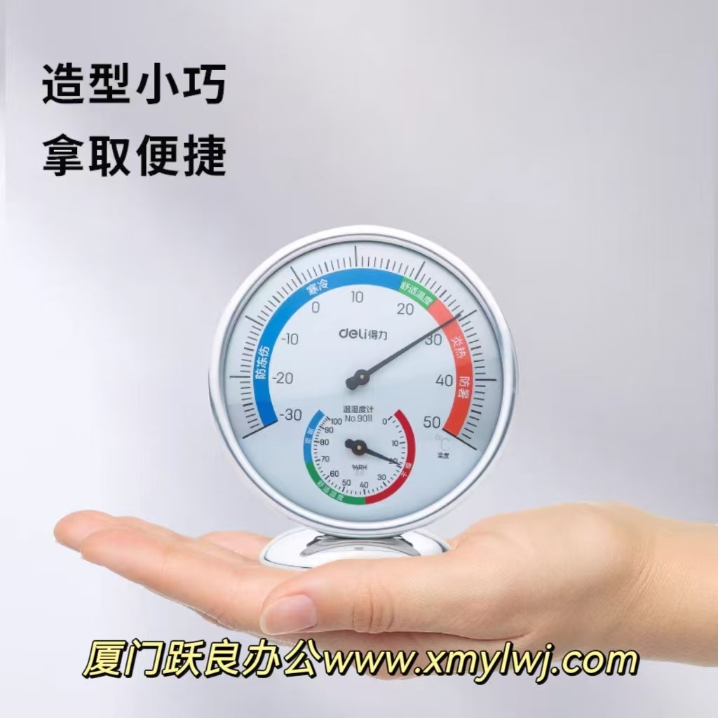 得力9011室内外温湿度计(银色)