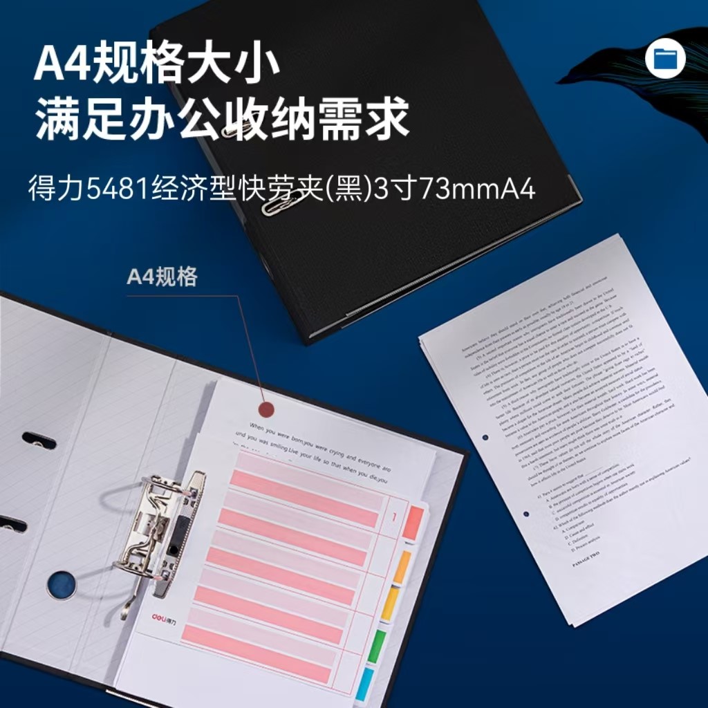 得力5481经济型快劳夹(黑)3寸A4/73mm