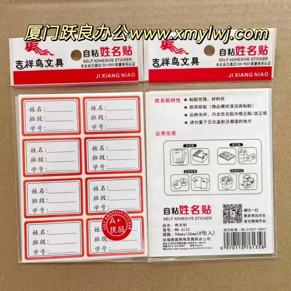 吉祥鸟XMT015/6132自粘姓名贴6张90mm*120mm