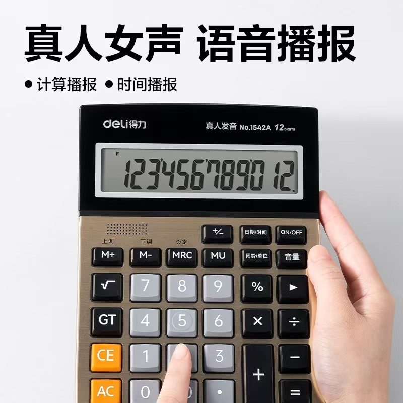 得力1542A手动关机语音计算器