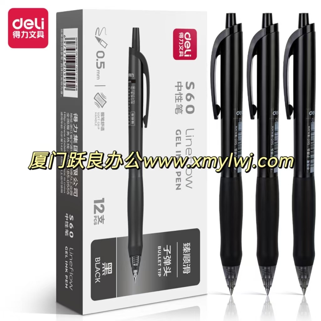 得力S60办公中性笔0.5mm子弹头黑