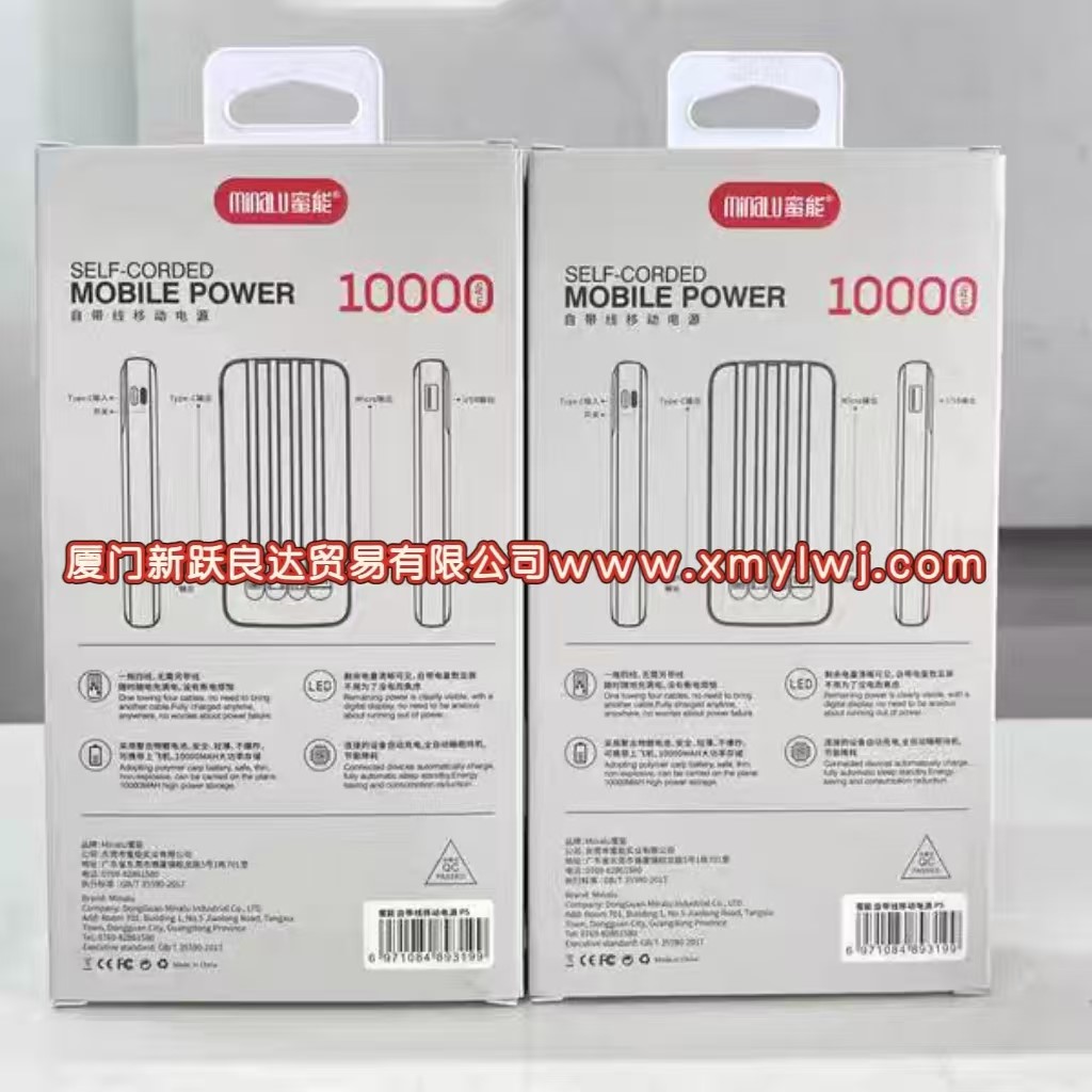 蜜能P5一拖四线移动电源快充充电宝10000mah3C认证