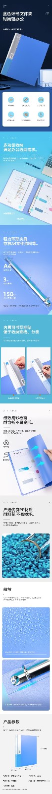 得力5384三孔文件夹A4(蓝)35mm