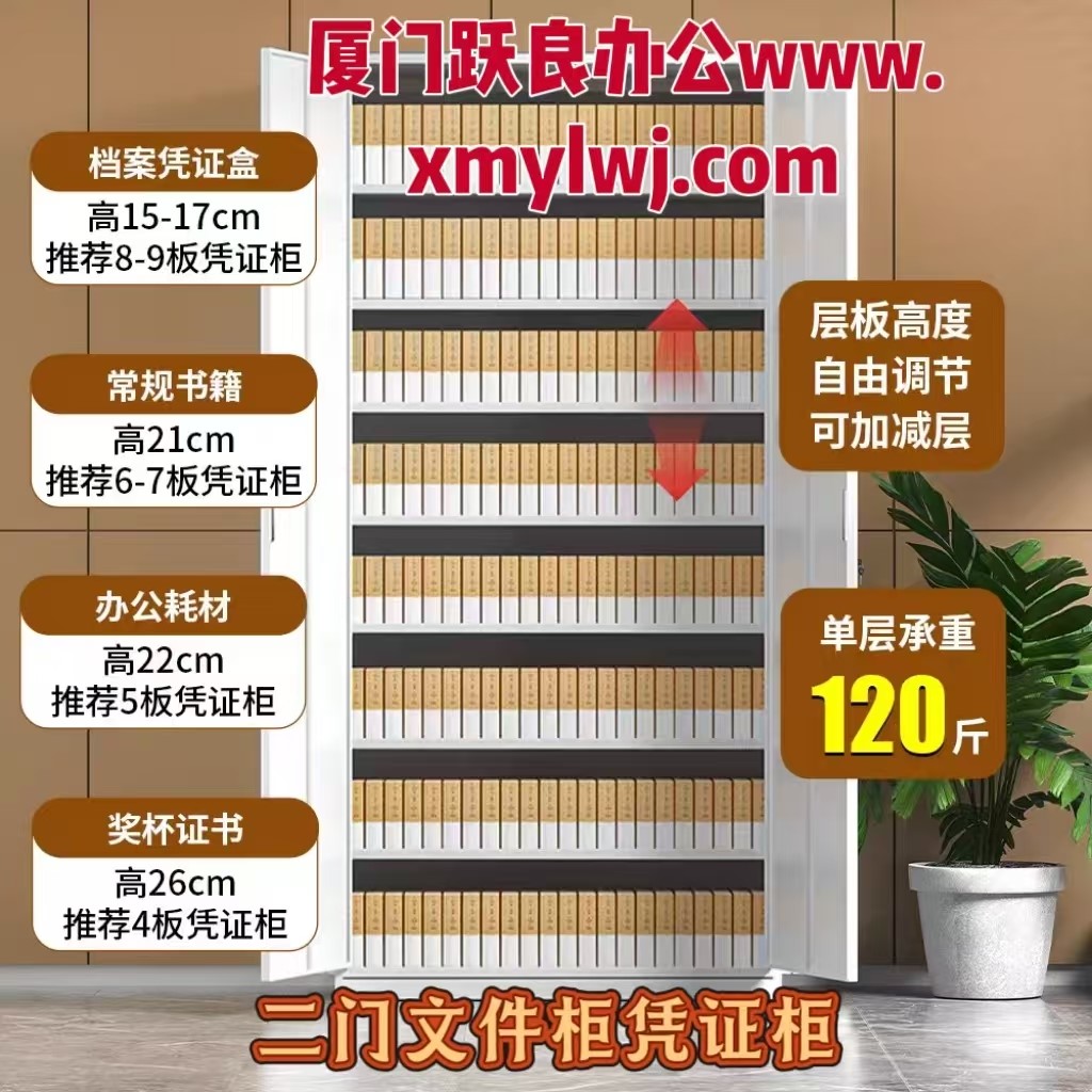 二门文件柜(凭证柜)加厚型(5块隔板,6层)(180*86*40cm)