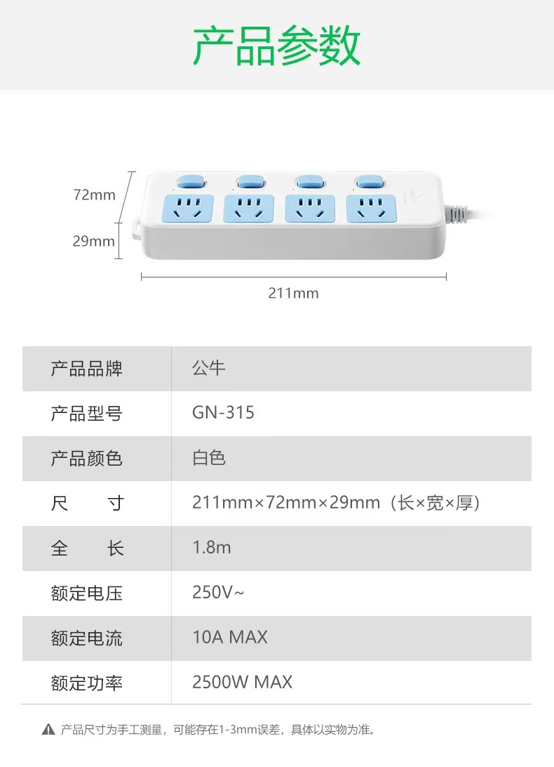 公牛GN315-1.8米排插(4开+4/3)