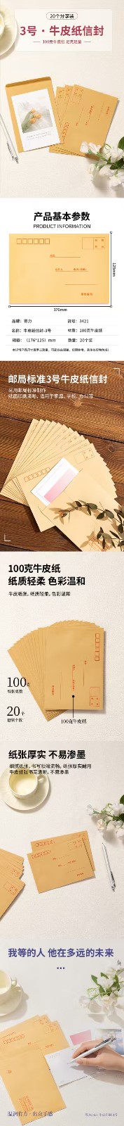 得力3421牛皮信封(米黄色)-3号20个装125*176mm