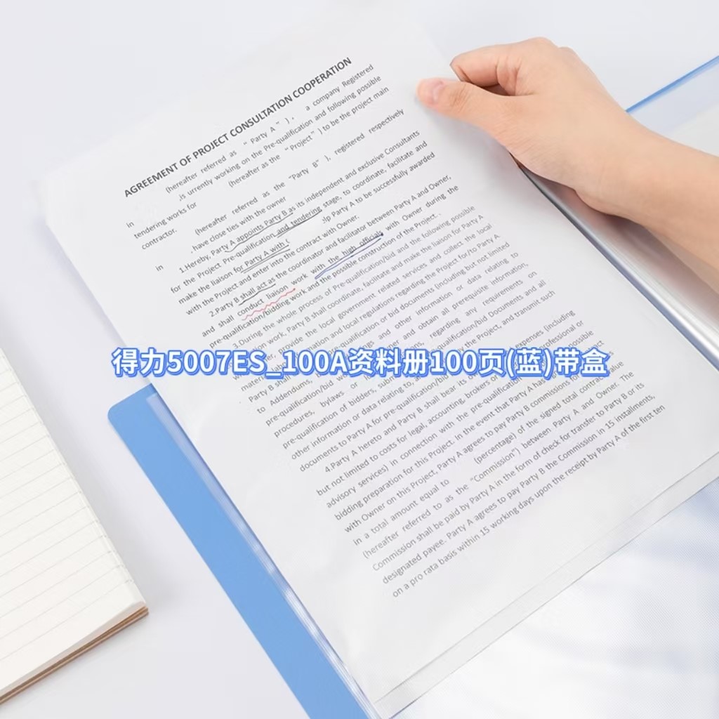得力5007ES_100A资料册100页(蓝)/A4带盒