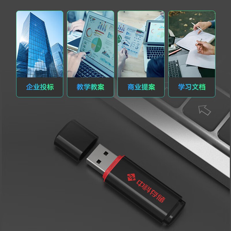 中科存 U盘 usb2.0 招标投标防尘u盘 即插即用企业竞标助力优盘 32GB【小黑盘】