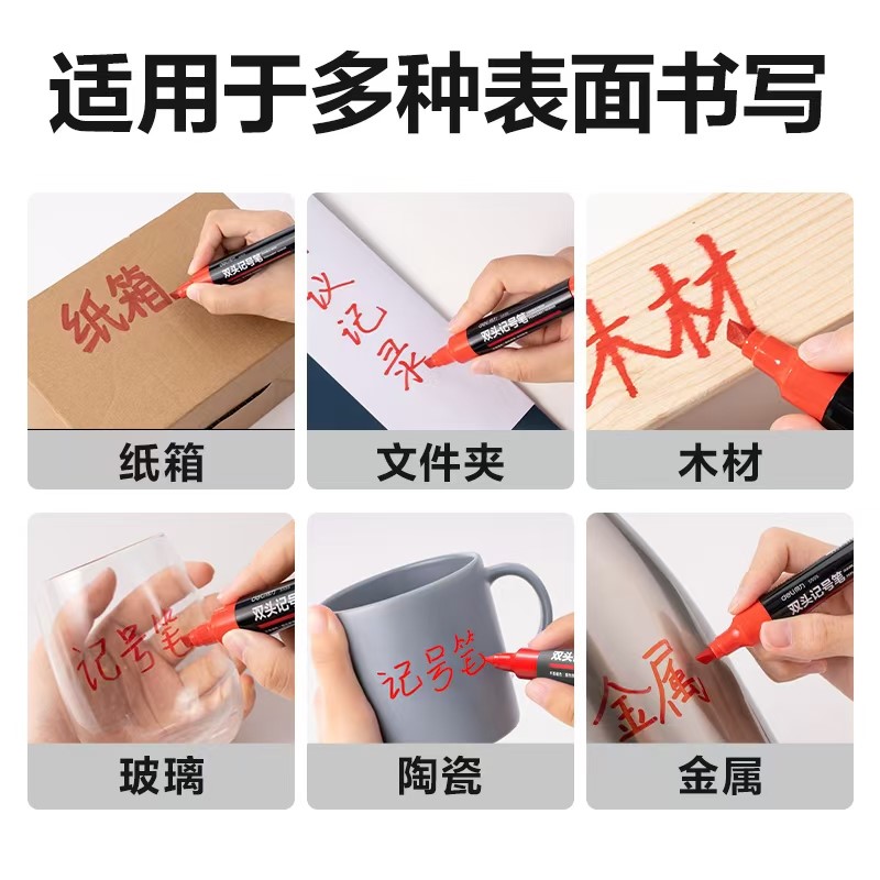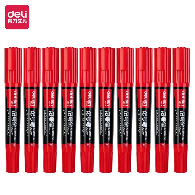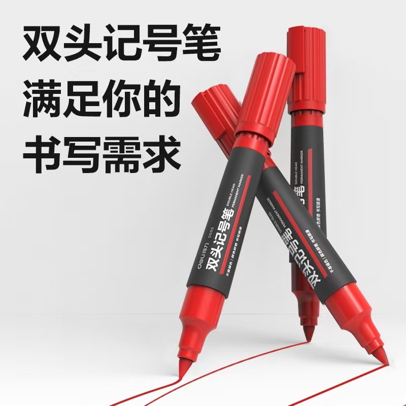 得力S555大双头记号笔红