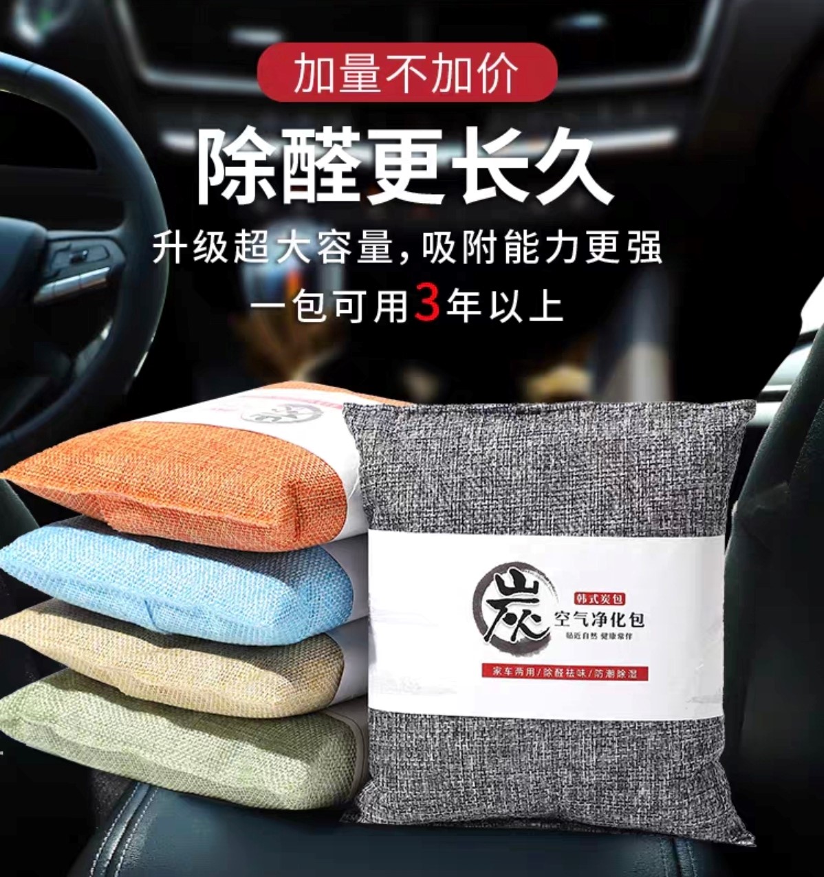 活性炭包车载家用除湿味碳包韩式麻布除去甲醛竹炭包500g