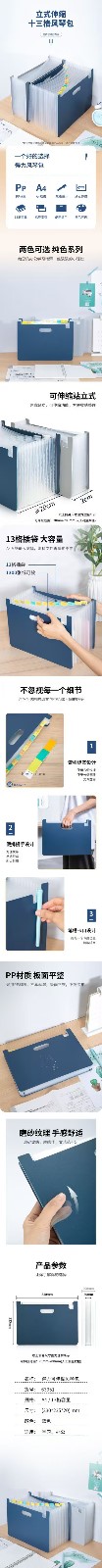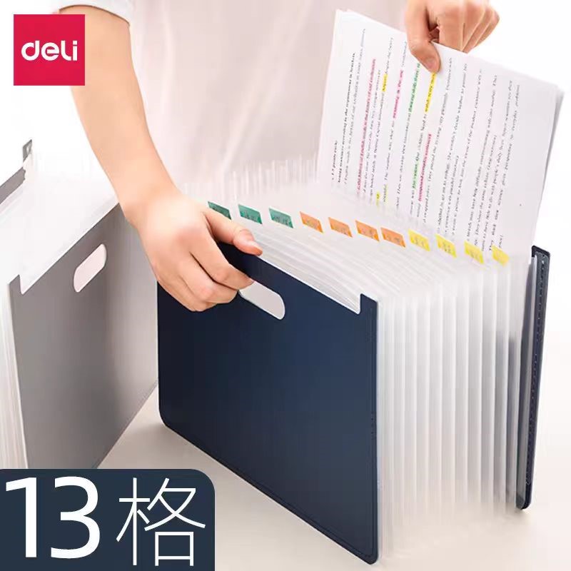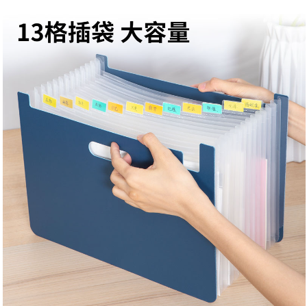 得力63951_13格横款发泡PP站立式风琴包(深蓝)