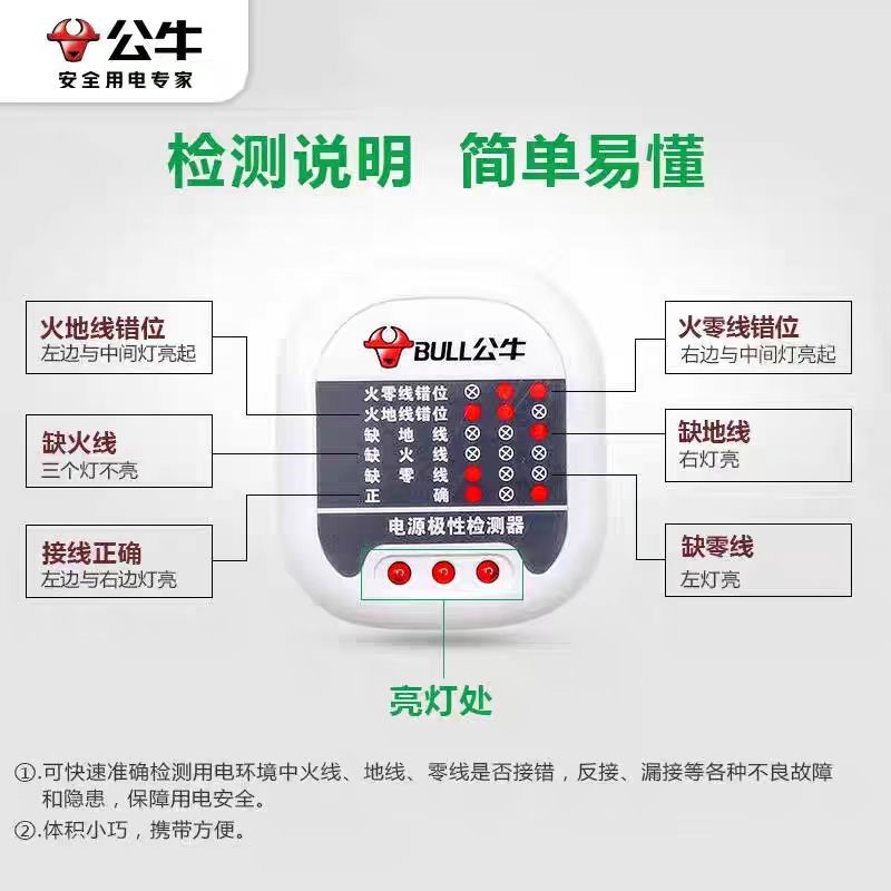 公牛GNJ-01电源极性检测器 验电器插座相位仪电源检测器