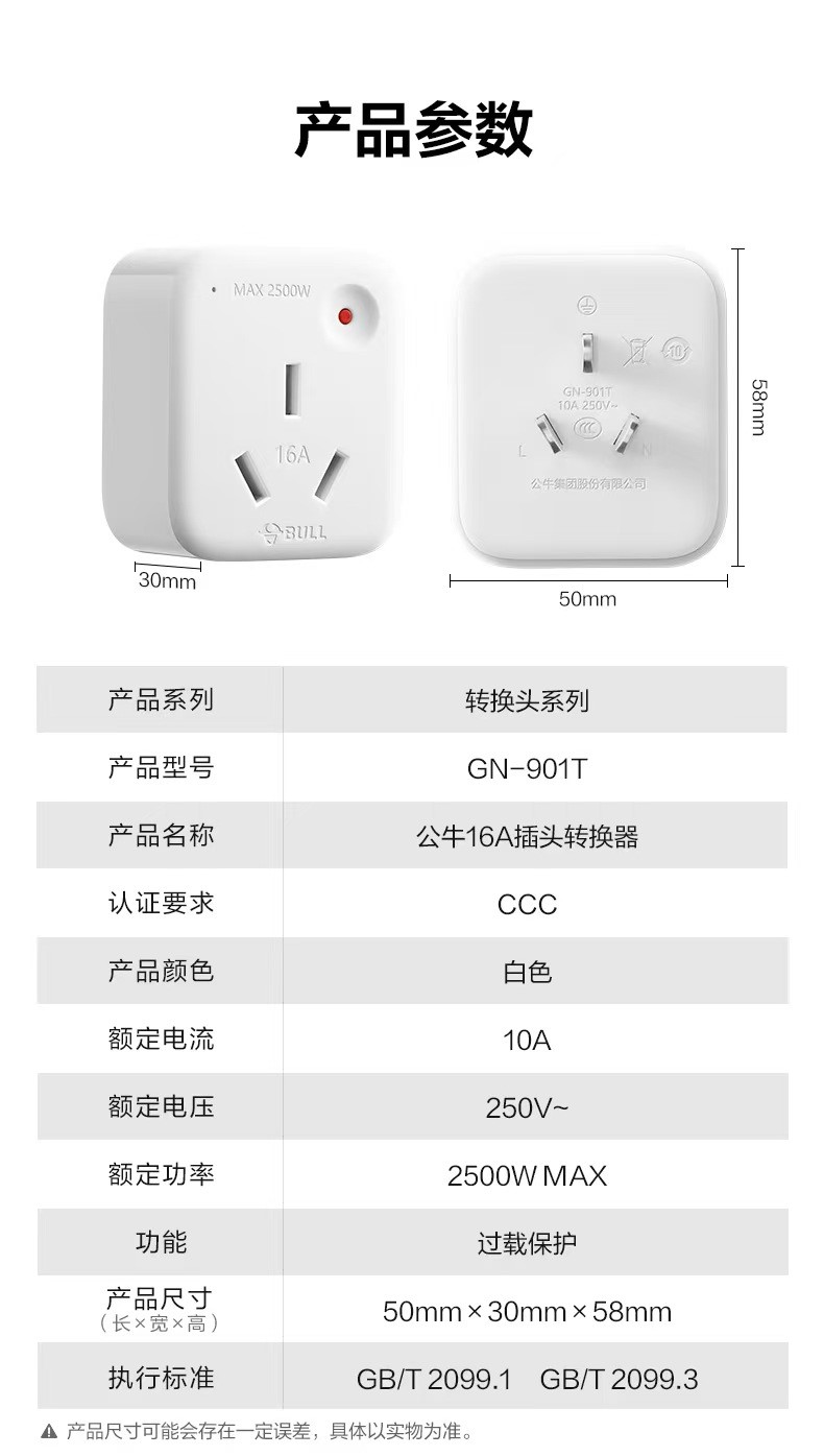 公牛GN-901T 10A转16A转换器