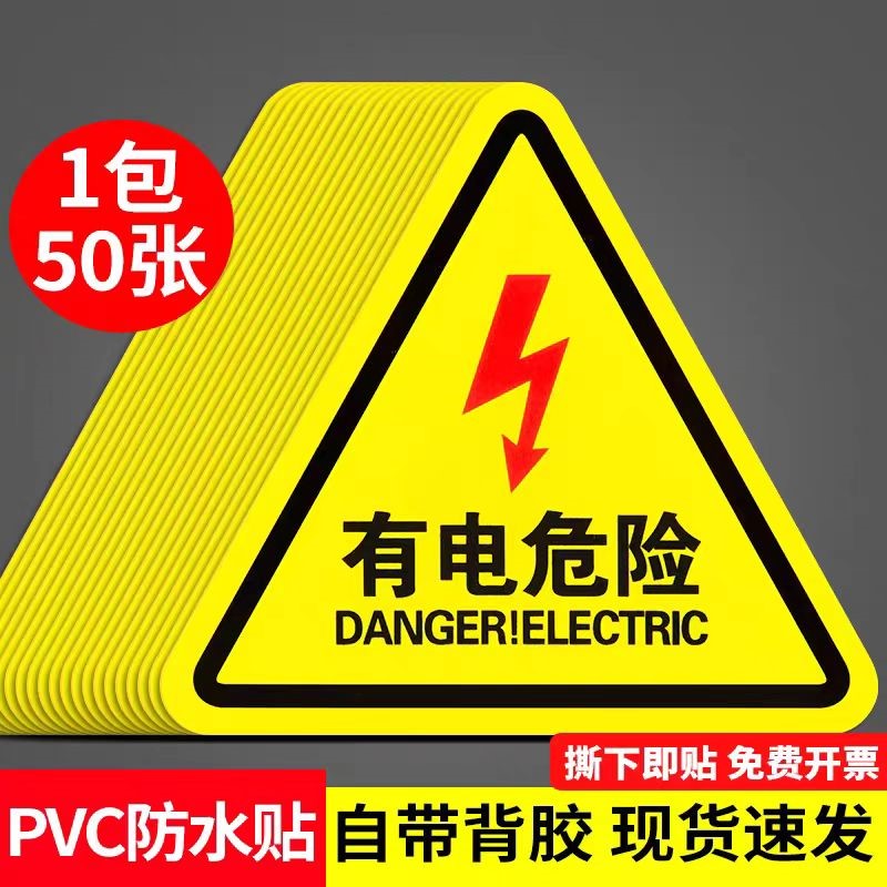 PVC三角形警示贴当心触电安全标识牌(当心触电10cm)