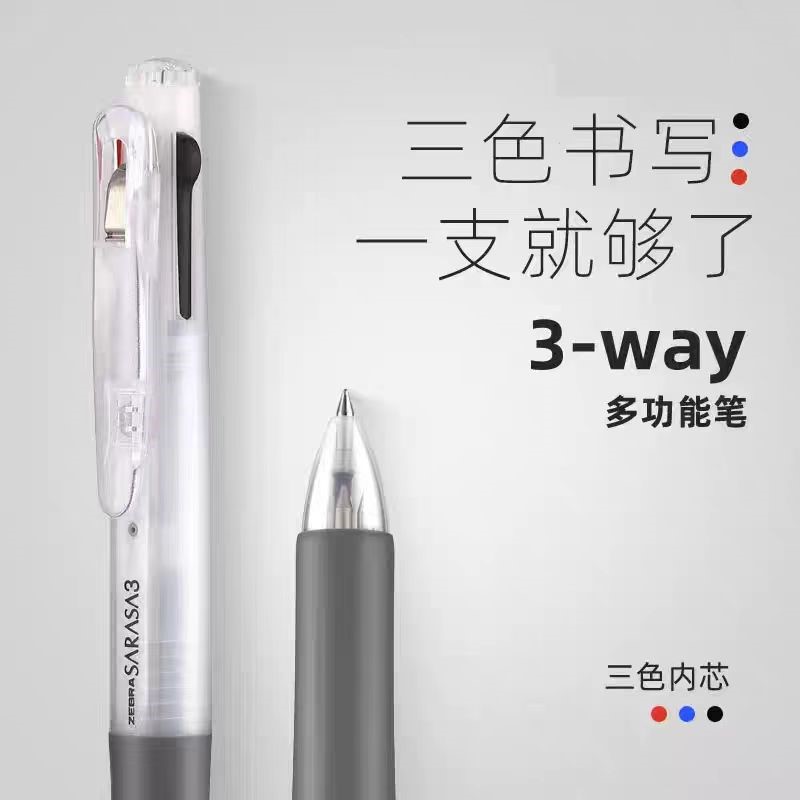 进口斑马J3J2-C三色按动中性笔0.5mm-