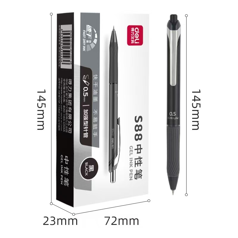 得力S88办公中性笔加强型针管(速干)0.5mm黑
