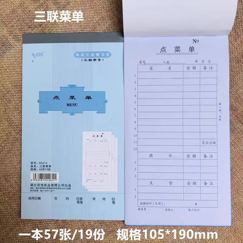 莱特D5014点菜单(酒家菜单)40K105*190mm57张/本