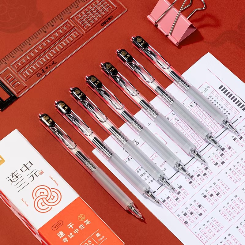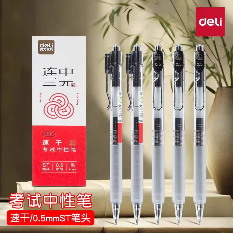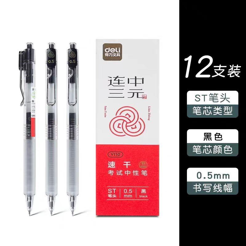 得力V110速干按动考试中性笔0.5mmST头(黑)
