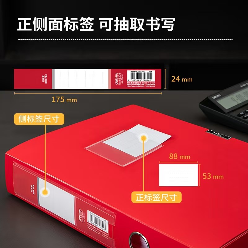 得力63203-35mm中国红档案盒