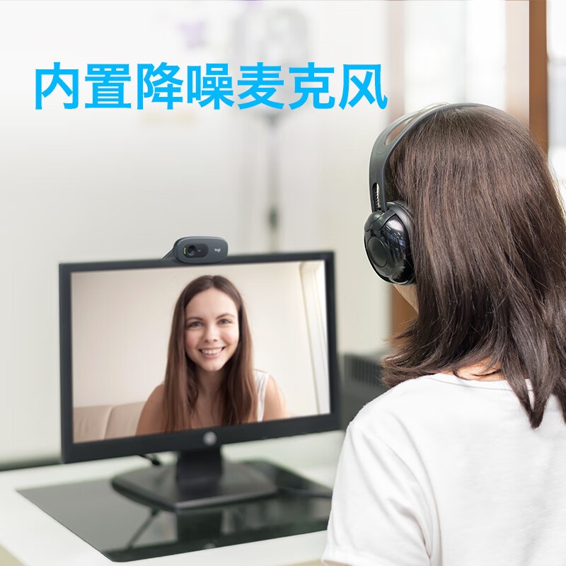 罗技C270 高清摄像头 USB电脑笔记本台式机摄像头 视频会议网课摄像头带麦克风 即插即用