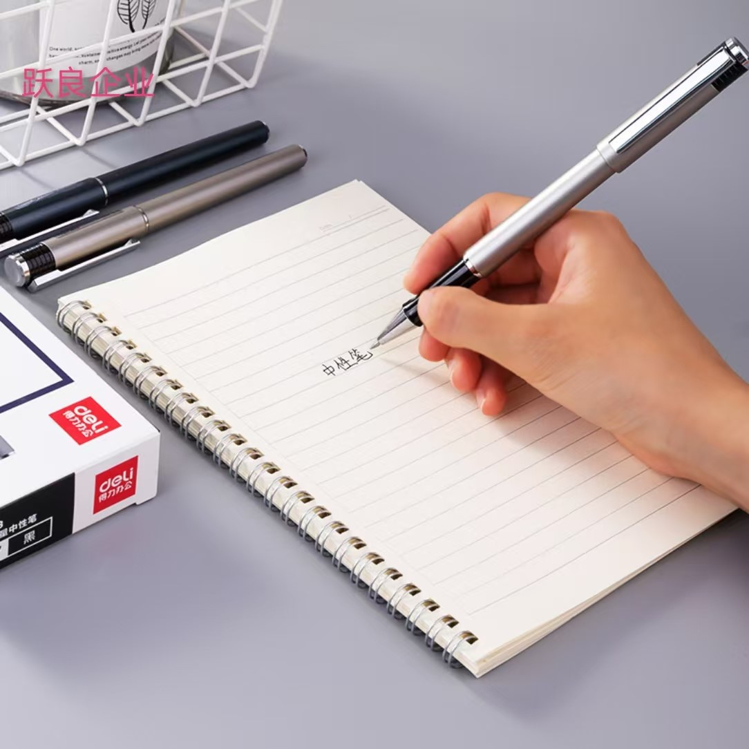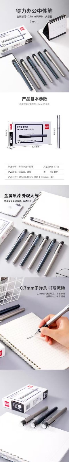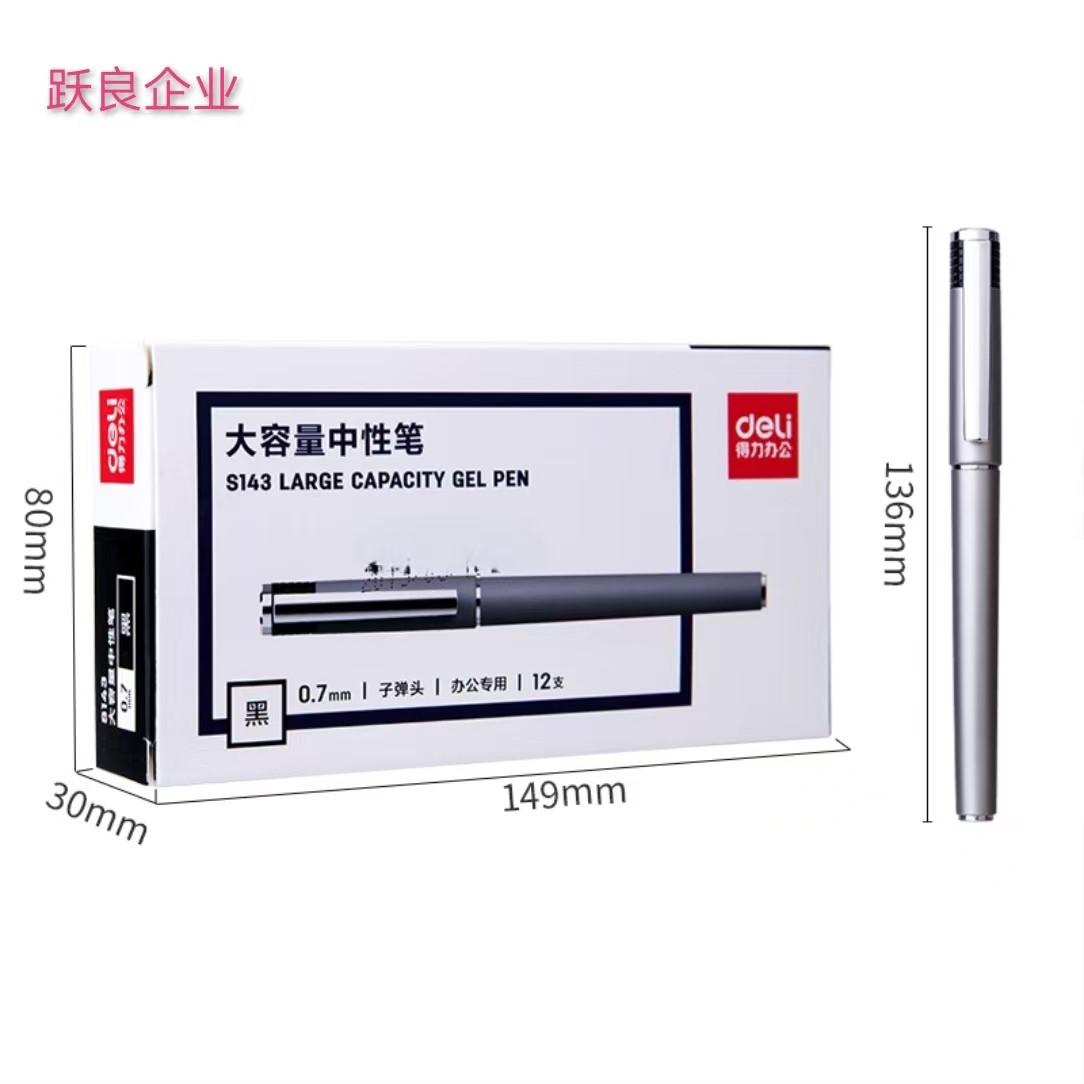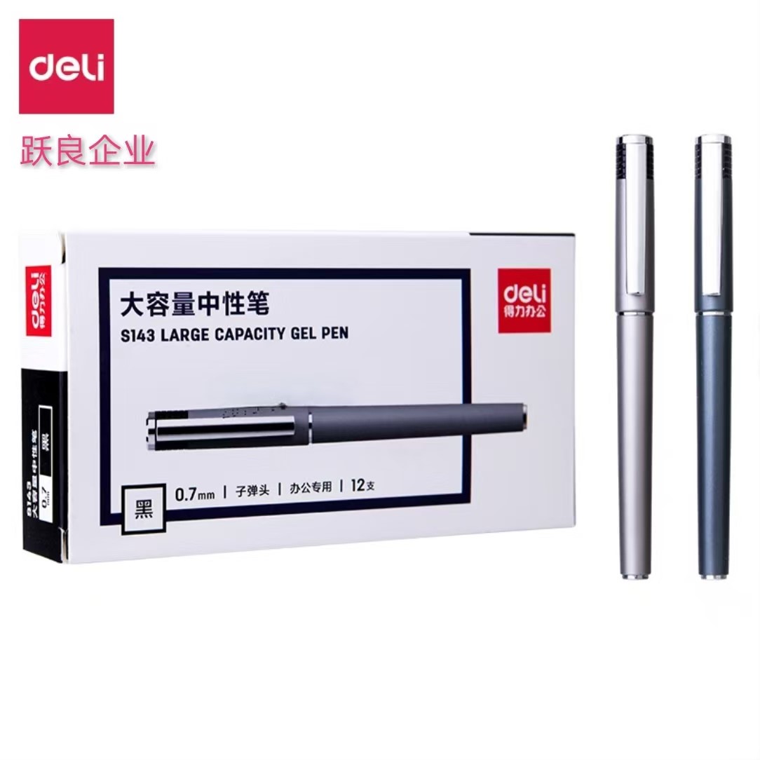 得力S143办公大容量中性笔黑0.7子弹头