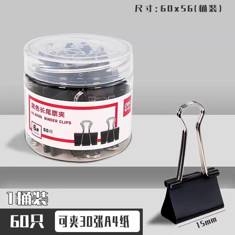 得力8566-6#黑色长尾票夹15mm