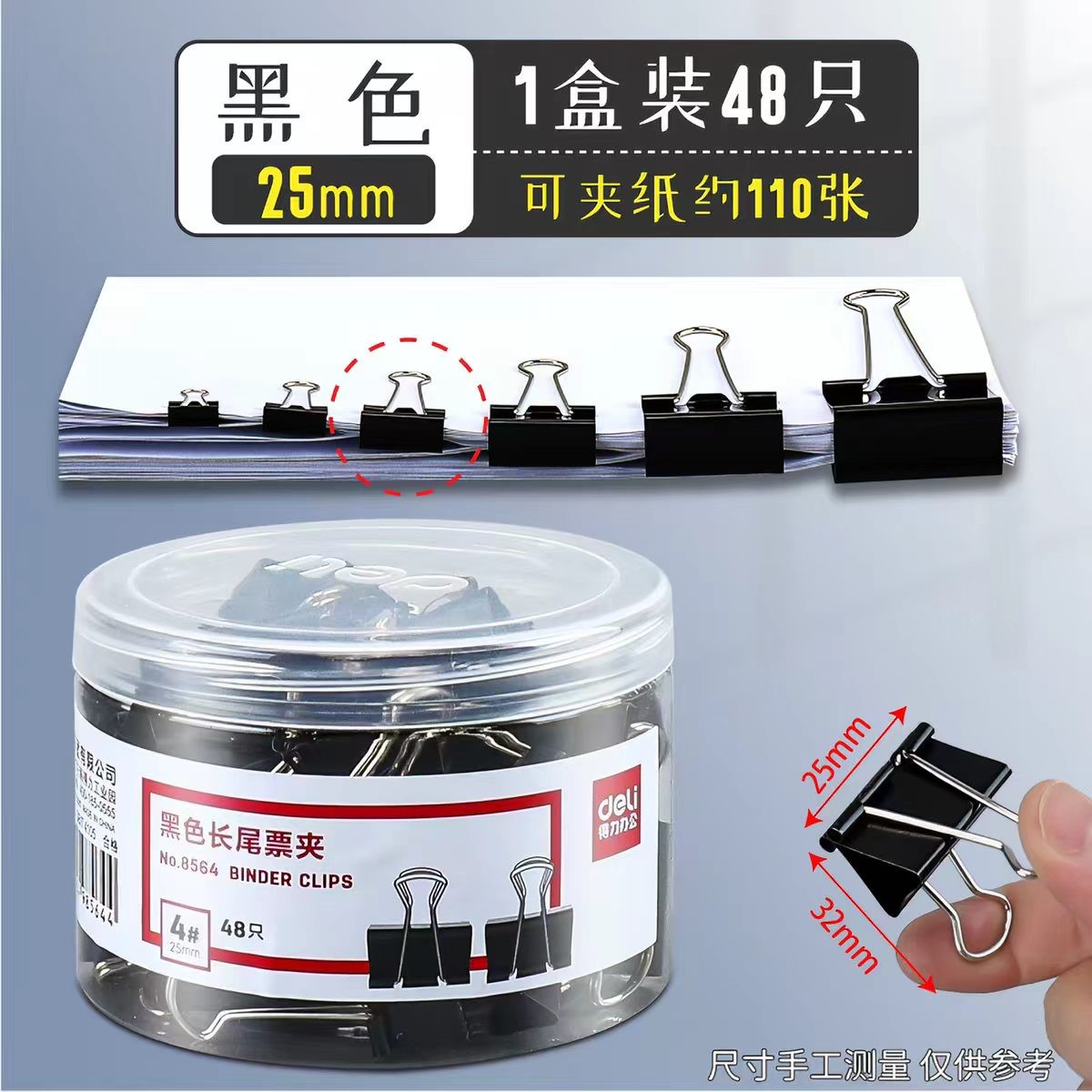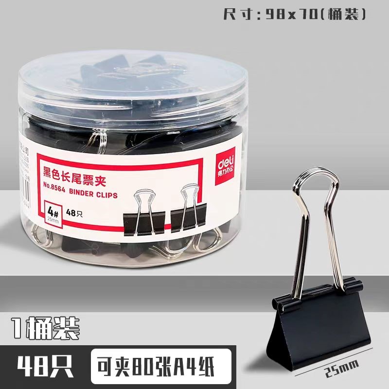 得力8564-4#黑色长尾票夹25mm